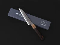 Diese Messerserie ist schon durch Ihre Herkunft, der Schmiede Nigara, etwas ganz Besonderes. Optisch ist sie durch das hell Finishing des Oberteils der Klinge und das markante, von Hand geschlagene Hammering geprägt. Den ganzen Charakter der Messer erfährt man aber erst, wenn man sie in seiner Küche einsetzt. Die Messer haben eine sehr gute, ausgewogene Gewichtsverteilung, sind dünn ausgeschmiedet und sehr scharf. Der harte Stahl des Schneidkerns, geschmiedet auf ca. 62