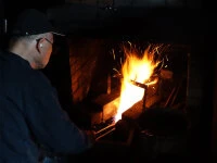 Jedes dieser traditionellen japanischen Kochmesser wird einzeln von Meister Toshiki Nanbu geschmiedet. Nanbu san, geboren 1940, ist Schmiedemeister der dritten Generation. Seine Kunst hat er von Yahichi Nanbu, erste Generation und Masamichi Nanbu, zweite Generation, gelernt. Geschmiedet wird in der traditionellen Schmiedetechnik von Echizen Takefu, die zum Ziel hat, die Messerklingen möglichst dünn zu schmieden und so leichte Messer mit sehr guten Eigenschaften zu bekommen. Die Suminagashi Serie weist ein einzigartiges Muster, man nennt es Tintenflussmuster, das durch die 11 Lagen entsteht und das Black Smith Finish im oberen Bereich der Klinge auf. Der Kohlenstoffstahl, aus dem die Serie geschmiedet wird, hat ca. 1,1% Kohlenstoff und ca. 0,3% Chrom. Alle Messer sind in einem Winkel von ca. 15° beidseitig geschliffen.