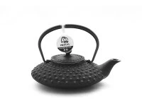wird der Tee aufgegossen. Meist ist sie innen emailliert, was die Abgabe von Eisen und Mineralien, die im hochwertigen, japanischen Gusseisen vorhanden sind, bremst. Aber auch Emaille ist nicht vollkommen dicht, so dass Tee aus einer hochwertigen Iwachu-Teekanne einen reicheren Geschmack erhalten wird. Minderwertige Kannen sollte der Teekenner aus geschmacklichen und gesundheitlichen Gründen meiden. Achten Sie deshalb darauf, dass die Teekanne mit dem Original-Stempel von Iwachu oder anderen hochwertigen Herstellern ausgestattet ist.