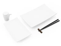 Das Sushi Set Spazio weiß besteht aus einer Sushiplatte, einem Sushi Teller, einem Sojasoßenkännchen, Essstäbchen aus Kirschholz und einer passenden Essstäbchenablage. Der Sushi Teller und die Sushiplatte stammen aus einer Geschirr Serie, bestehen aus echt japanischem, weißem Steingut, sind sehr modern geformt und eine überaus edle Erscheinung auf Ihrer Tafel. Das spezielle Sojasoßenkännchen ist aus Porzellan und ebenfalls weiß. Die Essstäbchen mit passender Ablage runden das Sushi Set ab. Die Essstäbchen stammen von Gato Miko, einer sehr bekannten Manufaktur on high-end lacquerware in Japan. Kunsthandwerker fertigen Sie von Hand aus natürlichem Kirschholz und lackieren sie mit