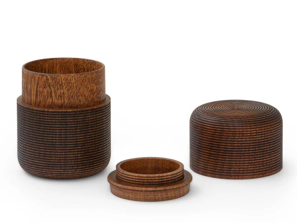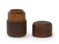 Bei den Teedosen Karmi von Gato Mikio sind Dose und Deckel so handwerklich gefertigt, dass sie einen guten Verschluss bilden, dabei aber leicht zu öffnen sind. Optimal werden die Fähigkeiten des Holzes, Feuchtigkeit und Temperatur zu regulieren, genutzt, um den Inhalt zu schützen. Die Teedosen bieten einen natürlichen Schutz der Teeblätter und ein erstaunliches Maß an Versiegelung. Gerade der Schutz vor Feuchtigkeit ist durch das Material Holz besonders ausgeprägt. Das Design mit den markanten Rillen entsteht durch eine ausnahmslos in Yamanaka beherrschte traditionelle Drechseltechnik, die Kasyokubiki genannt wird. Es gibt mehr als vierzig verschiedene Muster (Hira-suji) dieser Holz-Dekoration. Die Teedosen der Serie Karmi sind zur Lagerung von Grüner Tee, Schwarztee, China Tees, Kräutertees und auch Kaffeebohnen verwendbar.
